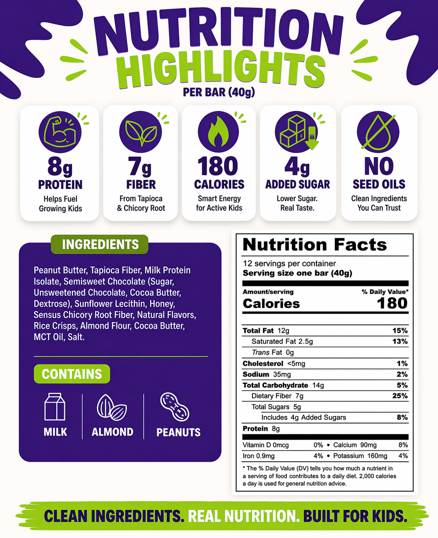We started Klean Kidz because we couldn’t find a protein bar we felt good about giving our own kids. Most were loaded with sugar, artificial ingredients, and low-quality oils.